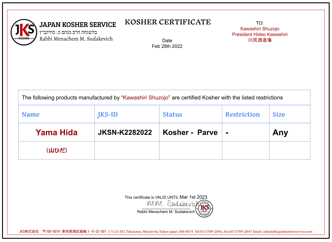 | 原料米 | 岐阜県産酒造好適米 ひだほまれ 100% |